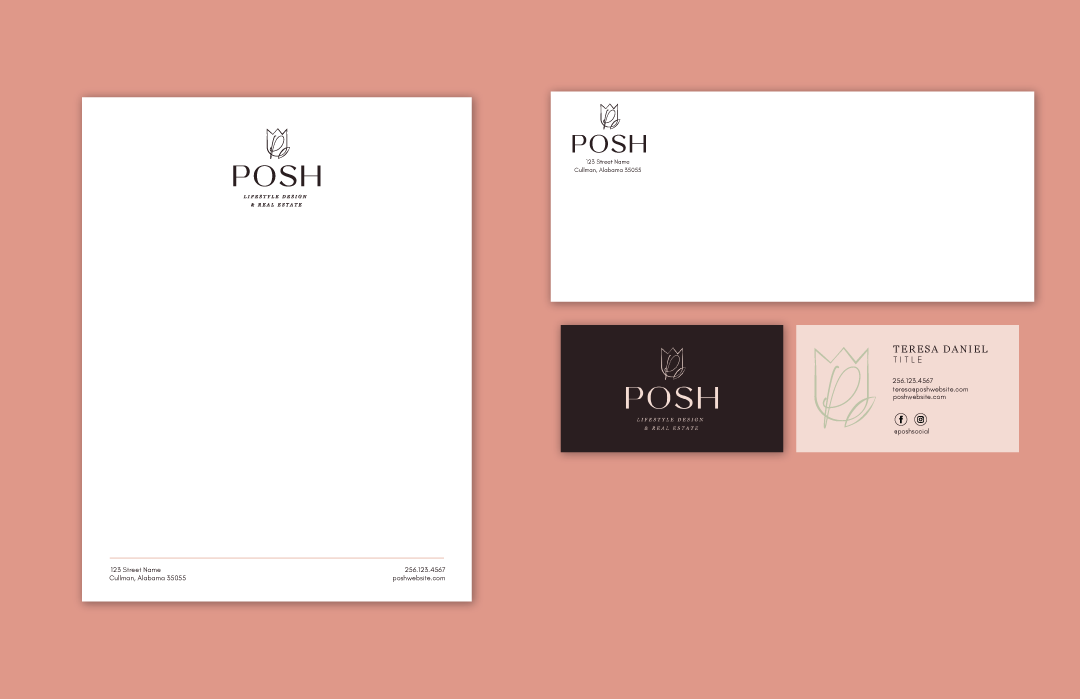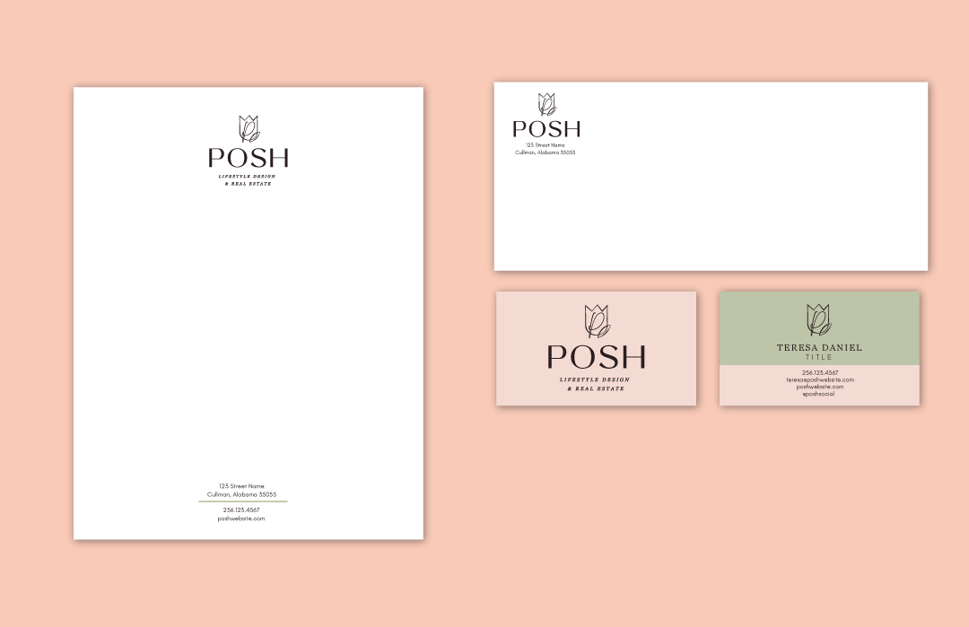 POSH is an up and coming lifestyle design and real estate business in the North Alabama. I had the privilege of working in the logo development, stationery design, and developing the website.